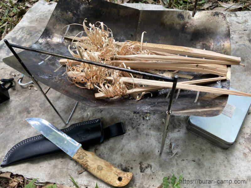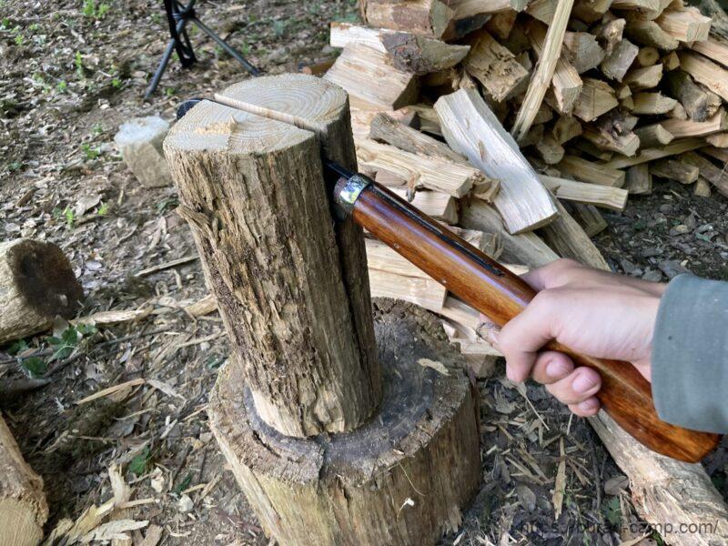 念願の鉈を手に入れた10月。まだ暑さの残る中、冬キャンプの準備のため薪割りに励みます。