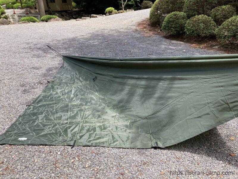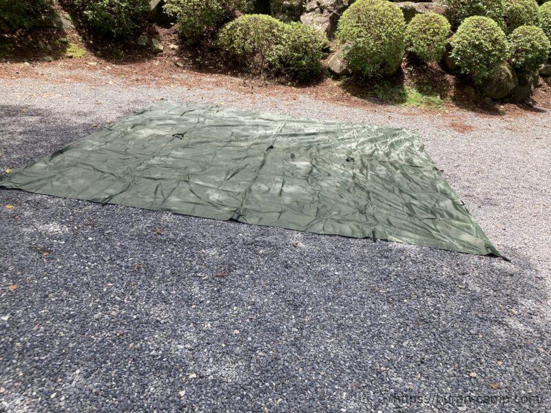 ただ、広げると想像以上に大きめ。正直3mにすれば良かったかな…?まあ大は小を兼ねるという事で、タープ泊を視野に入れれば、これくらいのサイズで良いのかもしれません。