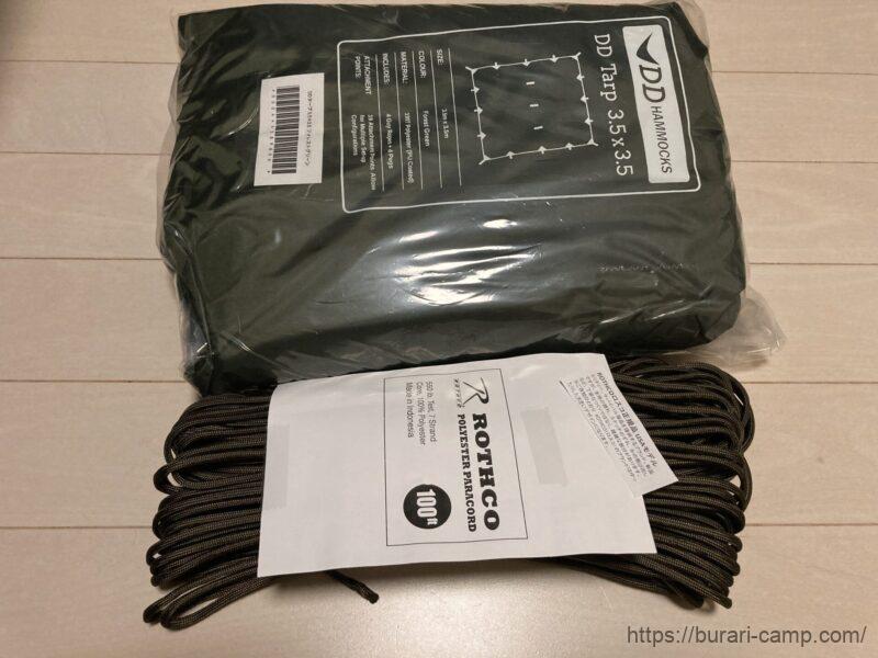 30mの大容量パラコード、私が大好きな“ロスコ”の商品です。こちらはタープの設営用として購入しました。