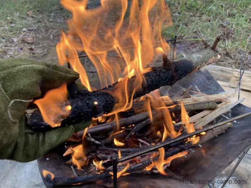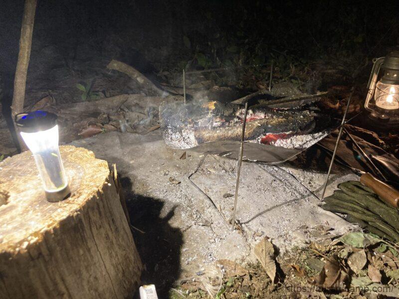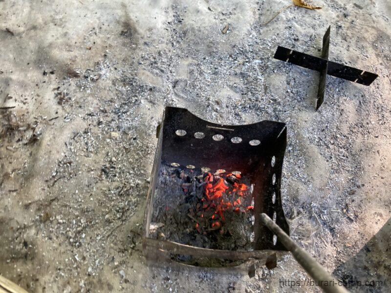 主に燃え残りの処理に使います。簡単調理もできますし、ボーッと眺めるだけで癒されますね。これも買って良かったと思える焚き火台です。