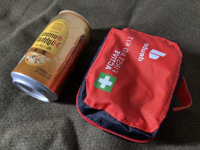 キャンプでよく怪我をするので、いい加減ファーストエイドキットを作る事にしました。本体は350ml缶並に小型。もっと安い中身入りのセットも多いですが、ブランドの好み・見た目で選びました。