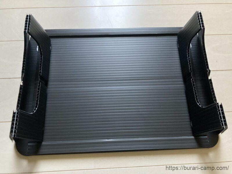 テーブルの軽量化の為、ガレージブランド“ノイコヤマイコ”のプラダンテーブルを購入。