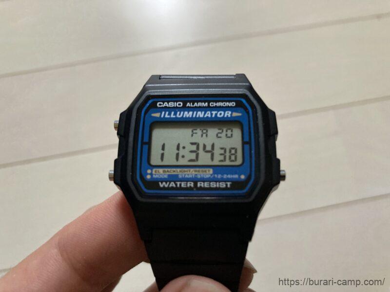 数あるモデルの中、この“F105-W”に決めた理由は、チープカシオの中で最もライトが明るいモデルだったから。