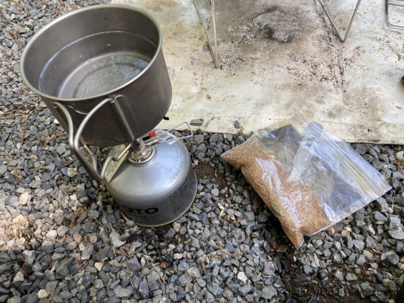 翌朝は曇り。もうすぐ雨が降るようで、片付けながら焚き火コーヒー。帰りたくない…