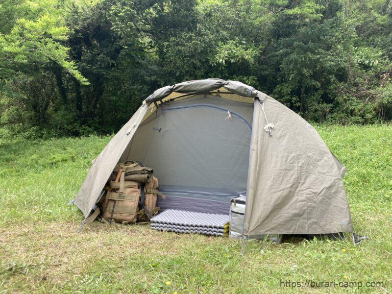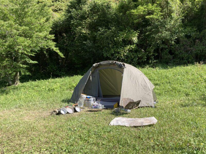 今回も、いつもの”バンドックソロドーム“、友人はタープでビークフライを設営。