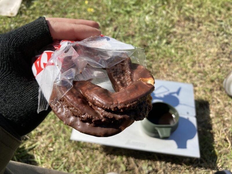 撤収まで時間が無いので、濡れた物を乾かしつつの朝食”マンハッタン“。