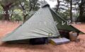 既に雨が降っていたので、まずはいつもの“バンドック ソロドーム“、友人は”ONETIGRIS コニファー“を設営。風が強くて思った以上に寒いです。