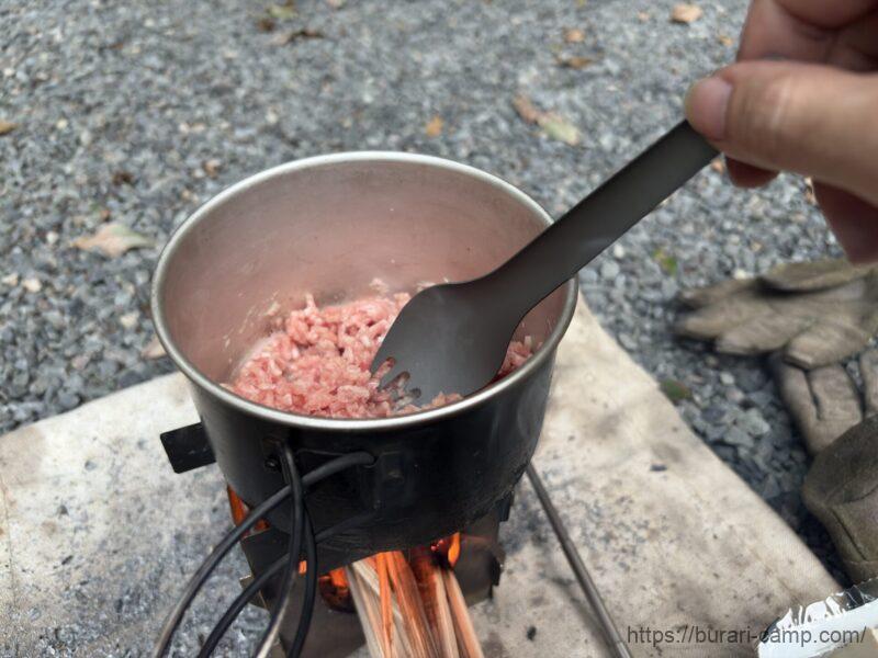 キャンプで作るのは初めてですが、いつもの味に大満足!