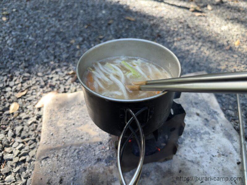 細麺と出汁のセット(2人前150円くらい)があるので、カット野菜等があれば簡単に作れます。