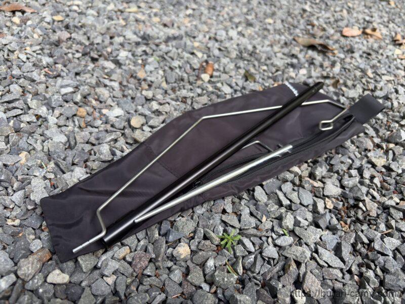 今までランタンスタンドは木の枝を使ってましたが、毎回拾えなかったり、地面次第で安定して刺せないのが悩みだったのです。