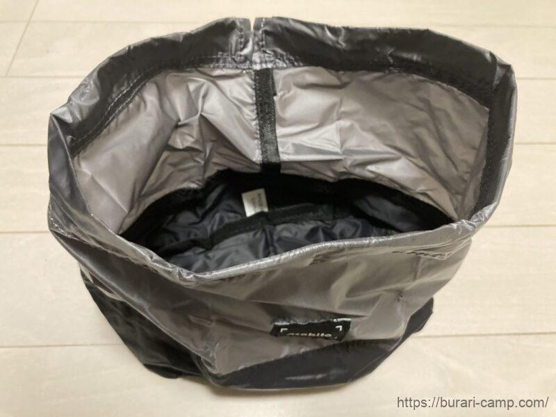 外観はツートンカラーにロゴが入ったシンプルな巾着になっており、キャンプだけでなく普段使いもできる見た目です。
