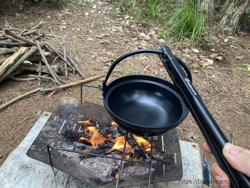 ソロ焚き火台で使うにはギリギリの長さなので、正直、火に近づけると熱いです。