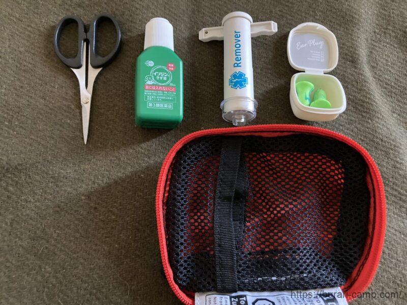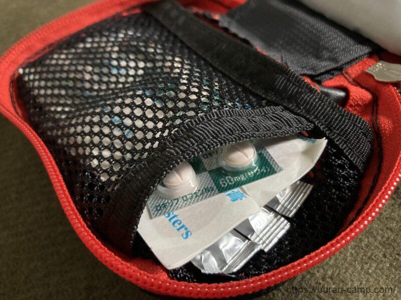 ファーストエイドキットには、軽いケガを想定した薬を収納。