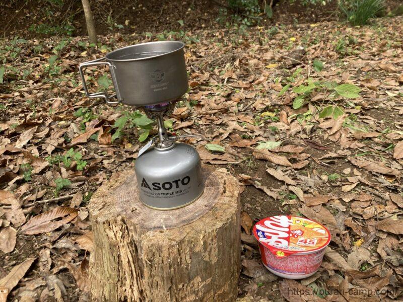 同時に“SOTOアミカス”も湯沸かし専用。基本、焚き火調理なのもありますが、OD缶は高いですからね。