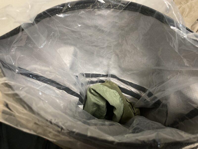 一気質のバックパックなら、あえて収納袋から出してパッキングするのもアリ。バッグの底に無駄なスペースなく収納できます。