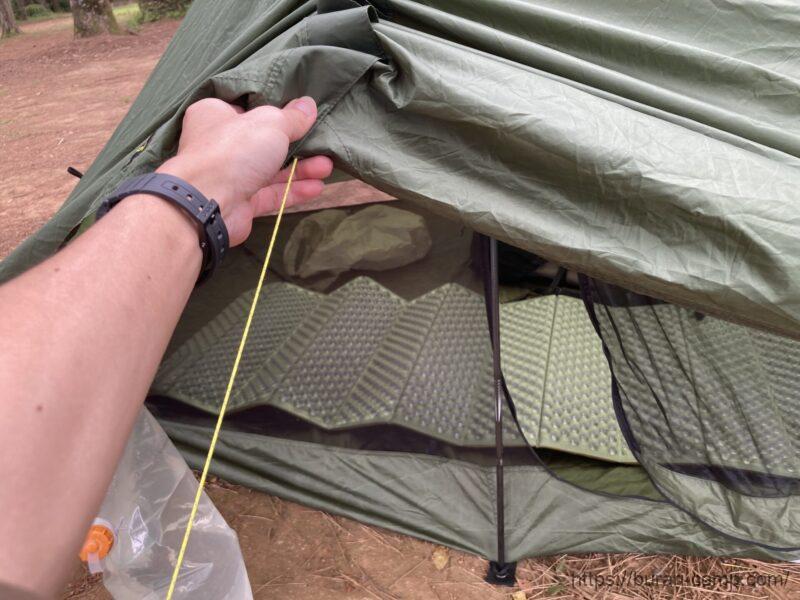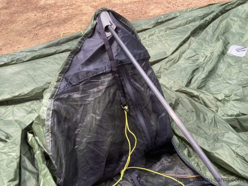 前室も広いので、荷物を置いたり室内でゆっくりしたりと、ULテントの中でもかなり快適に過ごせるモデルになっています。