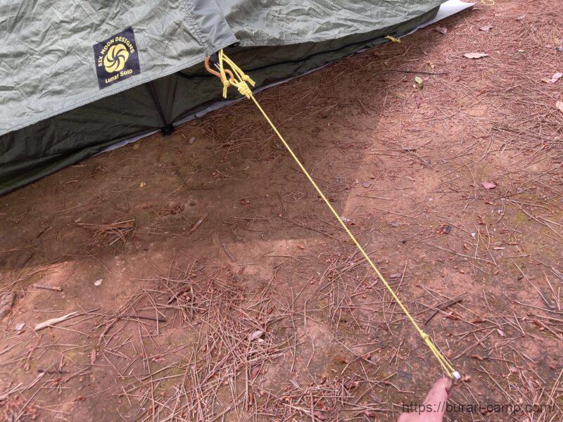3.テント4隅のロープをペグダウン