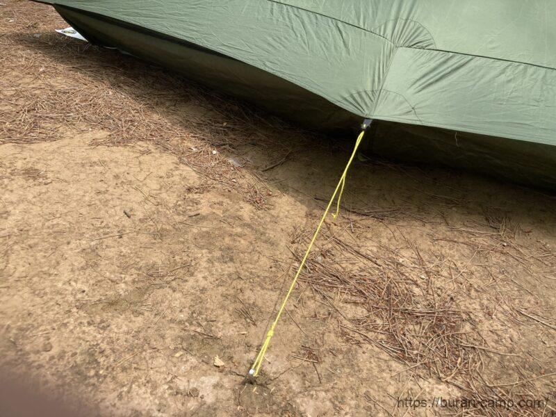5.テント前後2ヶ所をペグダウン