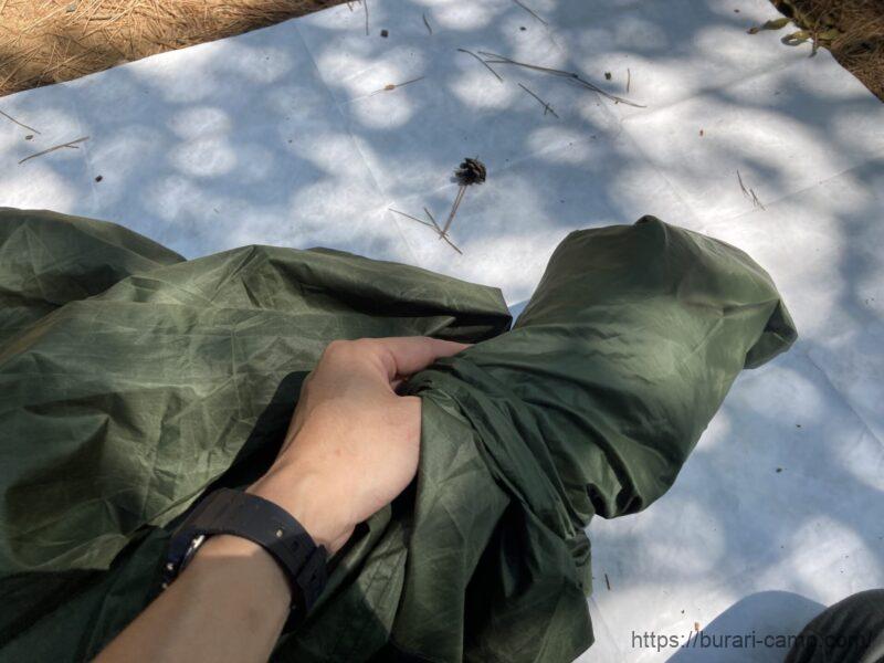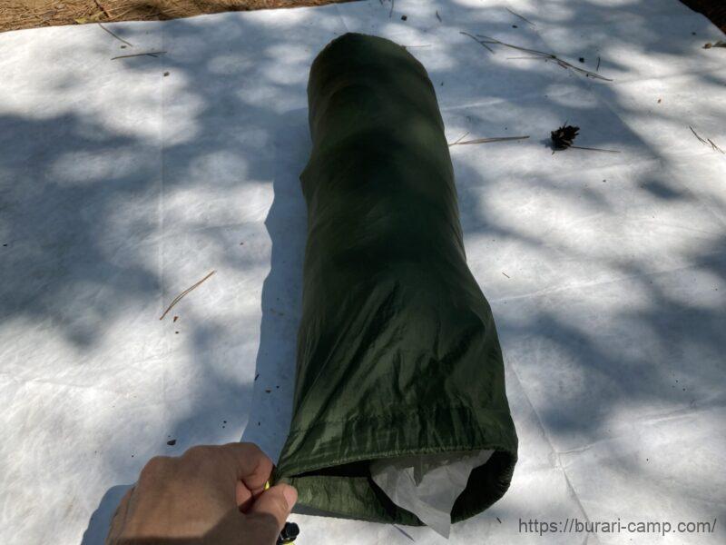 ちなみに、収納方法は畳まず適当に詰めていくだけ!ダウンシュラフの収納と同じ要領なので、すごく簡単です。