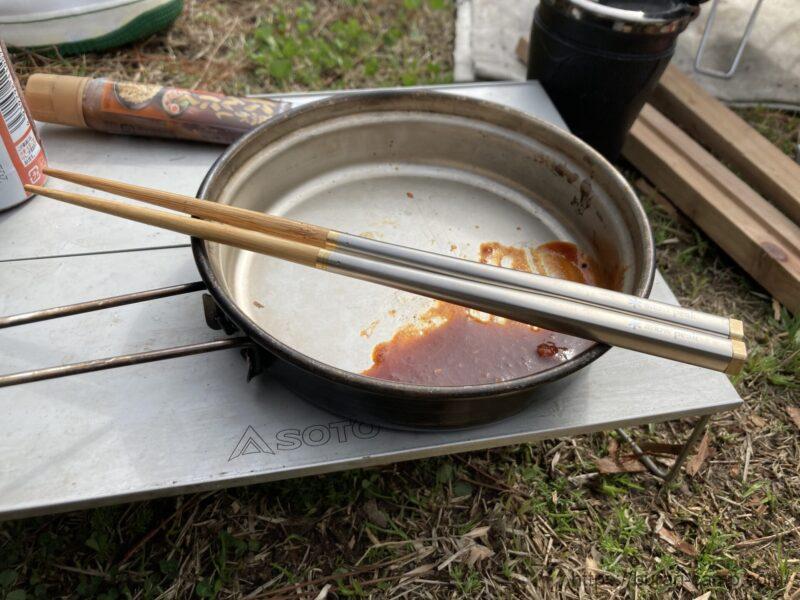 キャンプに必須のカトラリーと言えば”箸“。フォークやスプーンでもご飯は食べられますが、やっぱり日本人としては箸が使いやすいですね。