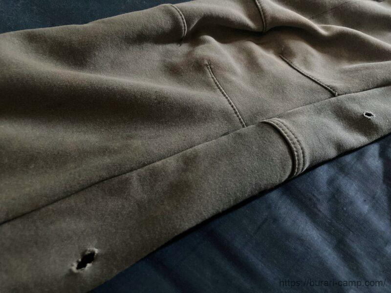 防寒着としてはもちろん焚き火用アウターとしても優秀!基本、私はものすごい近くで焚き火をするので、ズボンや手袋等は穴だらけになっています。