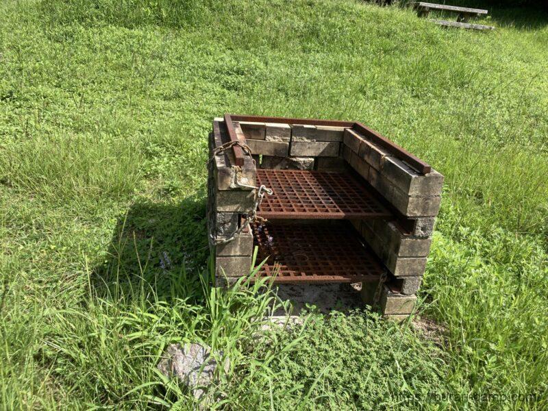 各区画にはベンチ・炉を完備。こちらの炉は、焚き火や灰捨て場として利用可能です。