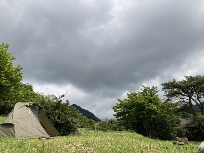 キャンプ場入口付近も同様に、涼しい木陰でキャンプを楽しめます。