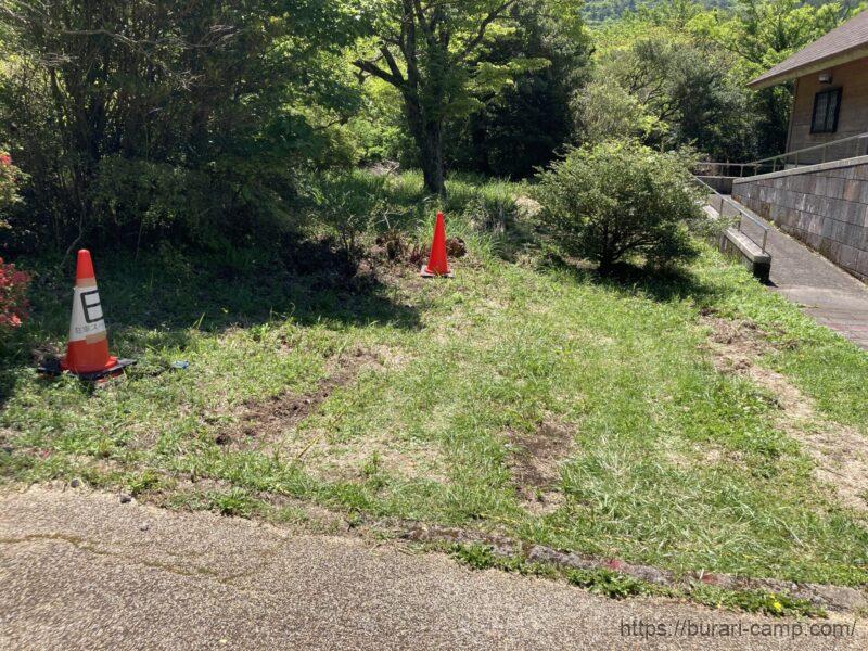 田代原キャンプ場のメインサイトと言えば、段差で仕切られた区画サイト。
