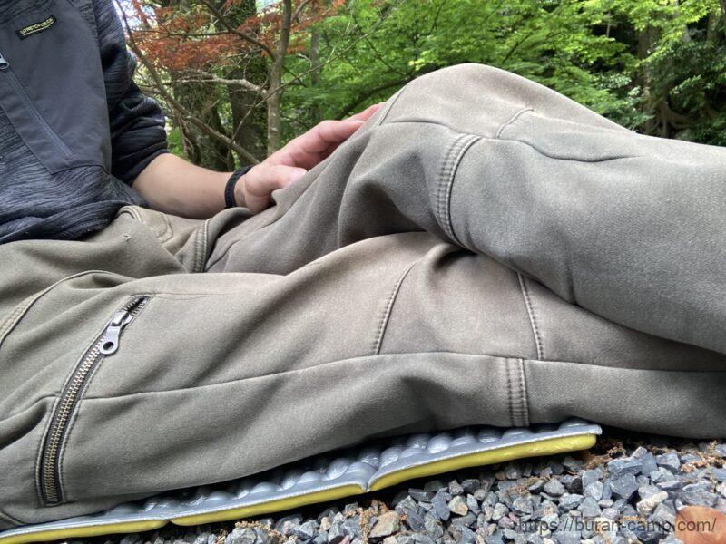 2cmと聞くと薄く感じるかもしれませんが、十分な厚みがあり、クッションの凸凹が地面と体に沿ってフィットするので想像以上に快適。
